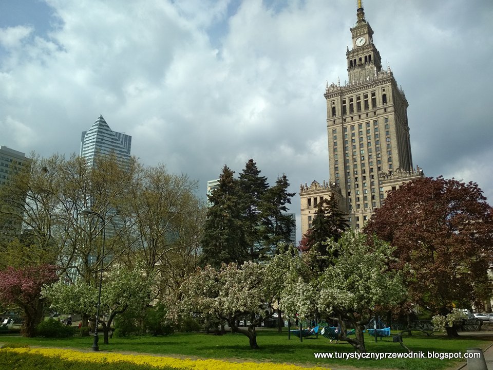 Warszawa to miasto kontrastów. Nowoczesne, przeszklone biurowce stoją tam tuż obok reliktu przeszłości, pamiątki z dawnych czasów, którą jest Pałac Kultury i Nauki. O sztuce socrealizmu na przykładzie tej budowli, pisałam już w jednym ze starszych artykułów (kto przegapił, tu >>LINK<<), więc nie będę się powtarzać. Tym razem chciałam skupić się na otoczeniu Pałacu, które w tym roku robi nadzwyczaj optymistyczne wrażenie.